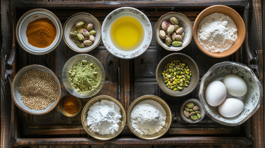💡 Tip: Toast the pistachios before grinding to deepen their nutty flavor. And always sift the cardamom for the smoothest batter texture.
