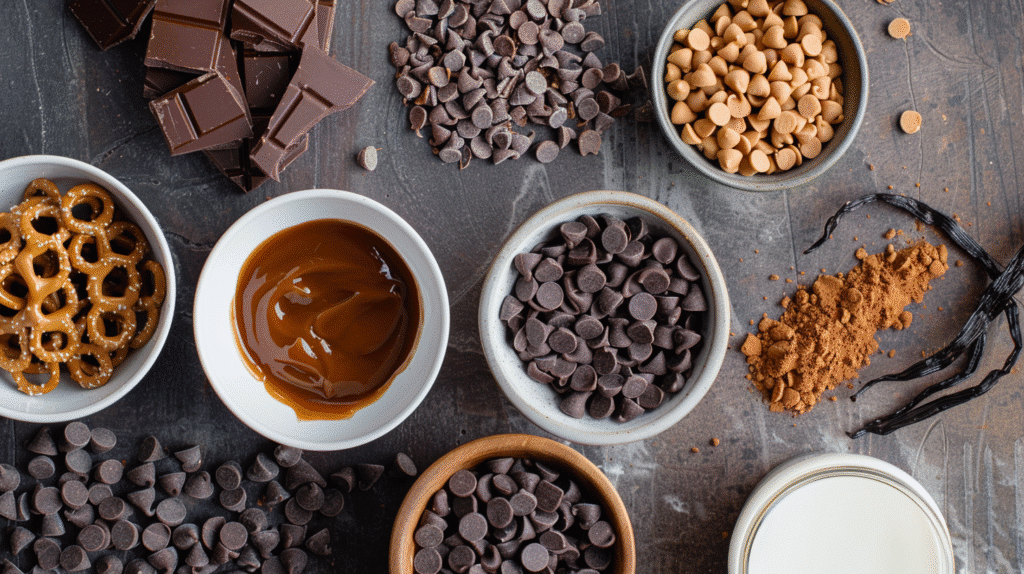 Each ingredient plays a key role in balancing sweet and salty fudge goodness. The chocolate and condensed milk create the smooth base, while the caramel pretzel combo adds texture and complexity.